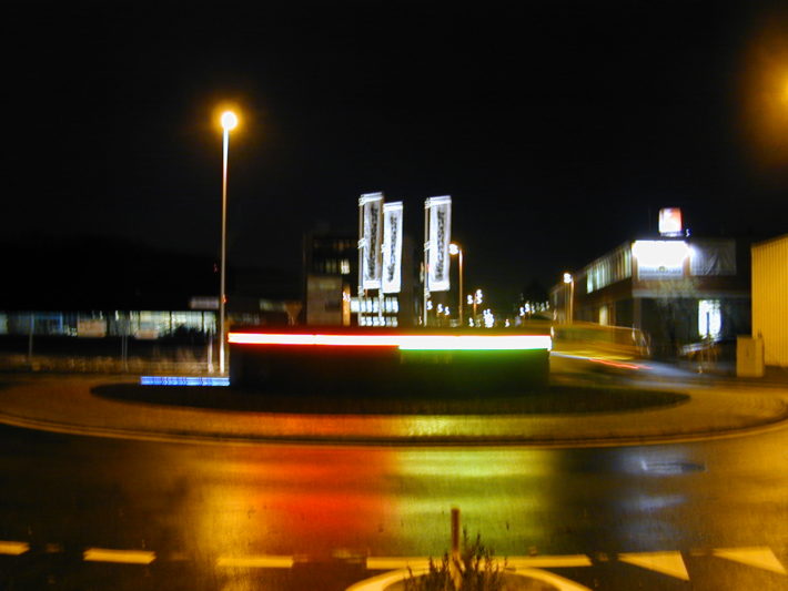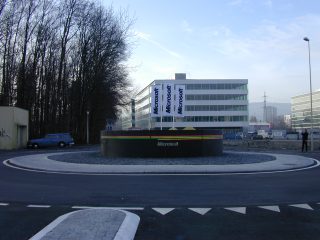 In Wallisellen entstand der erste Kreisel der Schweiz, der privat finanziert wurde und als Werbeträger genutzt wird. Darum macht die Gestaltung auf seinen Sponsor aufmerksam, der Schriftzug Microsoft und die vier leuchtend farbigen Streifen zeigen den Weg zum Hauptsitz in der Schweiz .