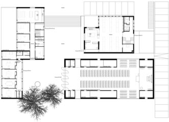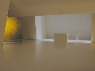 Die präzise Lichtführung strukturiert und inszeniert den Innenraum, dessen Grundriss sich in der Tradition gotischer Kirchen mit Haupt- und Seitenschiffen entfaltet. Der überhöhte Innenraum unterstützt die sakrale Atmosphäre, punktuell gesetzte Kirchenfenster bringen unterschiedlich farbiges Licht in die religiöse Andacht.