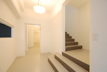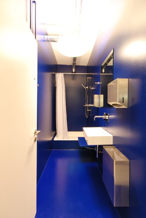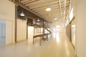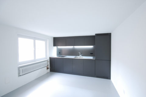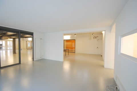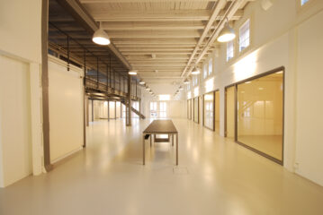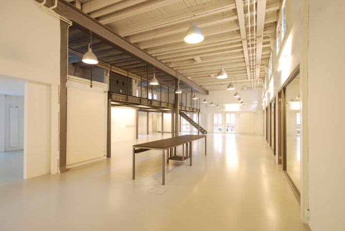 Möglichst wenige präzise Eingriffe verwandeln die Bausubstanz einer charmanten Fabrikationshalle in ein Grossraumbüro mit möglichst vielen Arbeitsplätzen. Sanitäre Einrichtungen und Nasszellen mussten ebenso neu installiert werden wie auch der Boden, welcher grossflächig als PU-Belag eingebaut wurde.