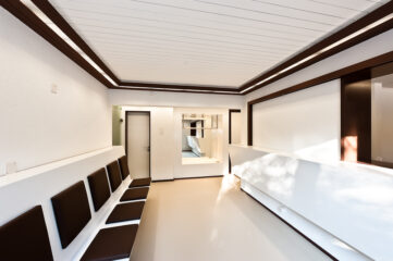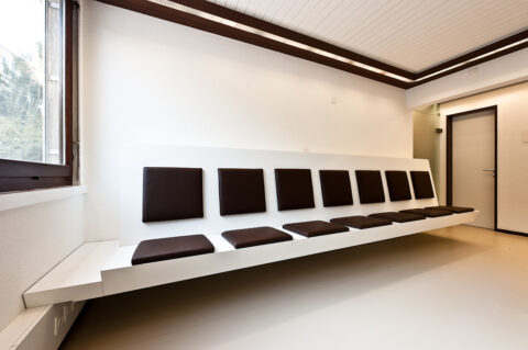 Die u-förmig angeordneten Behandlungsräume sind funktional und zurückhaltend gestaltet, Böden, Decken und Wände wurden saniert.