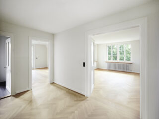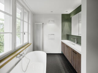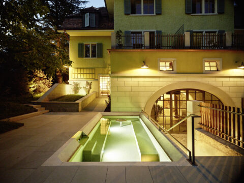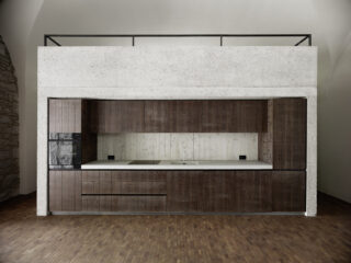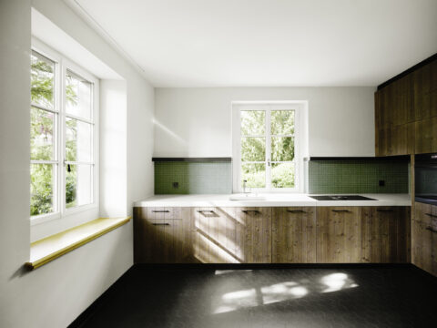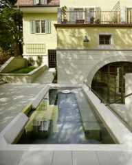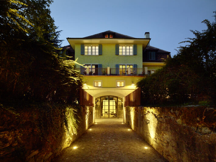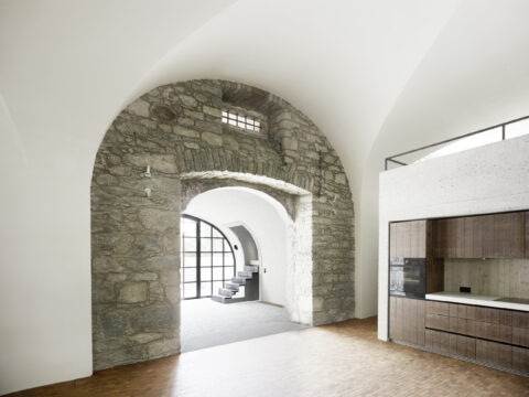 Im Zuge der umfassenden Sanierung mit grossen denkmalpflegerischen Auflagen liessen sich zwei unterschiedliche Ansätze umsetzen: Die ehemalige Trotte wurde zu einer modernen Wohnloft umgestaltet. Um alt und neu klar zu trennen, wurden die neuen kubischen Einbauten deutlich von der ursprünglichen Bausubstanz weggerückt und in jenen Materialien ausgeführt, die unserer Gegenwart entsprechen. Die vormals zwei Wohnungen des Wohnhauses konnten auf vier grosszügige Wohneinheiten erweitert werden. Der kunsthandwerkliche Ausbau wurde an vielen Orten restauriert und ergänzt, in den Küchen- und Badebereichen setzen zeitgemässe Eingriffe feine Akzente.