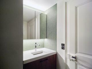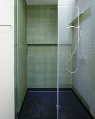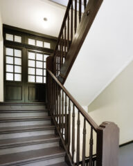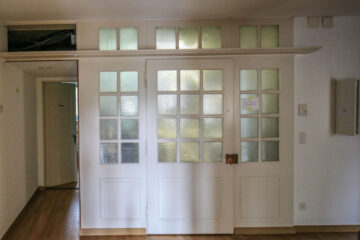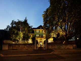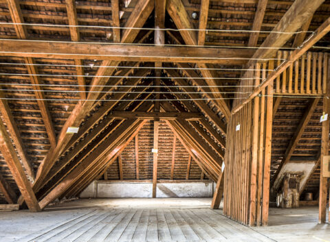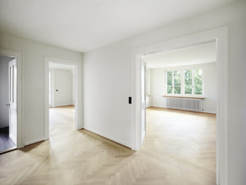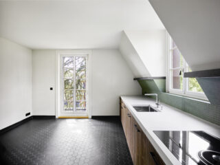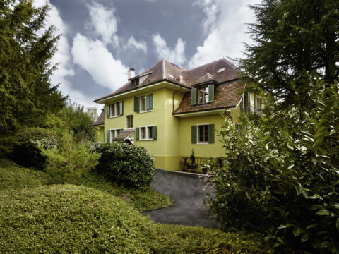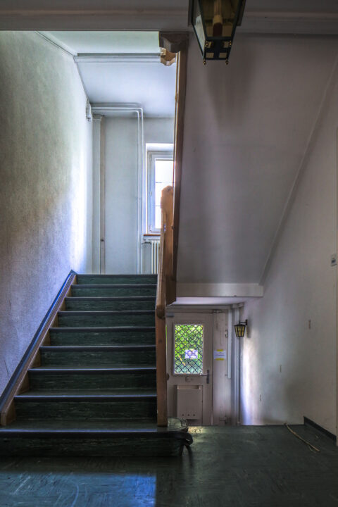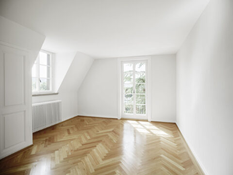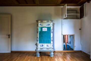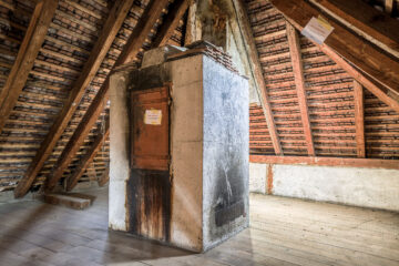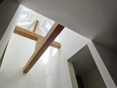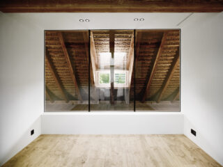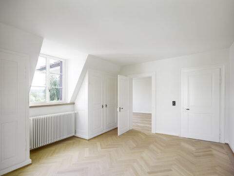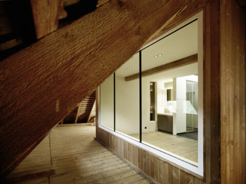Eine historische Besonderheit befindet sich im imposanten Dachgeschoss des Gebäudes: Unter dem geschützten Dachstock befindet sich ein alter Räucherofen, der ebenfalls unter Schutz steht. Dem klassischen Mansardenzimmer, welches wir in Altbauten oft antreffen, zollten die Architekten in Form einer neu angelegten, frei stehenden Box unter dem eindrücklichen Dachstuhl Tribut. Der grosszügig verglaste Kubus dient als Gästezimmer und kann von jeder Wohneinheit dazugemietet werden kann. .