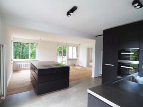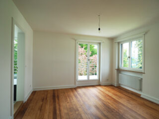 Das Einfamilienhaus aus den Dreissigerjahren liegt auf einem grossen Grundstück mit schönem Baumbestand und Garten. Der intelligente Grundriss, die qualitativ hochwertige Bausubstanz, die privilegierte Lage nahe Ennetbaden mit Ausblick ins Grüne: dies sind die Voraussetzungen für den Umbau und die Sanierung des Privathauses mit grosser Wohnqualität.