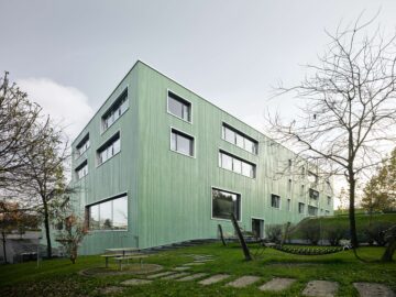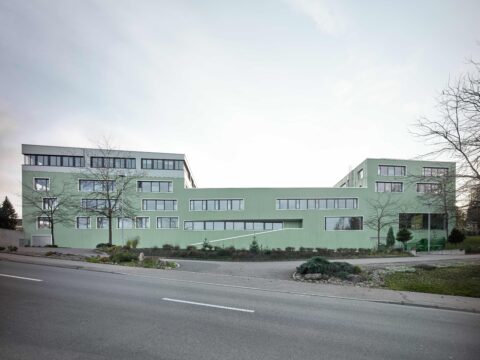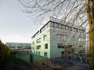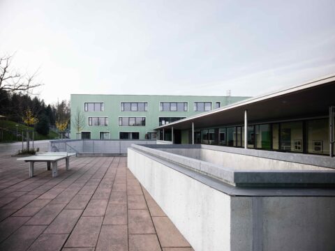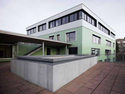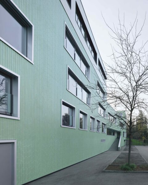 Hoch über dem Zürichsee, unterhalb des Waldes gelegen, bedarf das Schulhaus der ZIS (Zurich International School) einer Totalsanierung der Gebäudehülle. Massive Bauschäden an der bestehenden Kompaktfassade, gepaart mit schlechten Energiewerten, machten einen Wechsel vom bestehenden Konzept zu einer hinterlüfteten, mit Keramikplatten komplett eingekleideten Fassade unumgänglich.