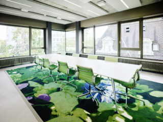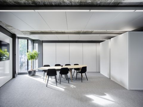 Die Konferenzräume gliedern sich mit grosser Selbstverständlichkeit in den Grundriss ein und sind so gesetzt, dass immer wieder räumliche Öffnungen gebildet werden, welche die Korridore übergangslos erweitern und zu Arbeits- und Aufenthaltszonen werden.