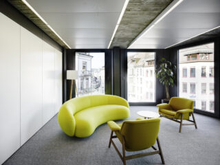 Die Neugestaltung des Geschäftssitzes von BCG Boston Consulting Group in Zürich erstreckt sich über sechs Geschosse und schafft 400 Arbeitsplätze mit unterschiedlichen Qualitäten: Offene Zonen und Rückzugsorte gliedern die Stockwerke so, dass eine abwechslungsreiche Arbeitsatmosphäre entsteht.
