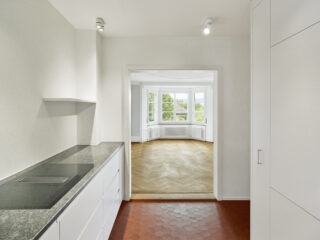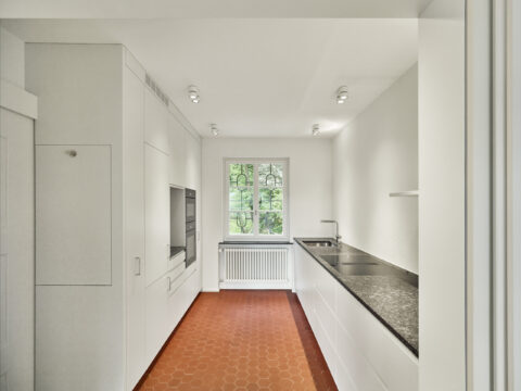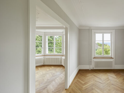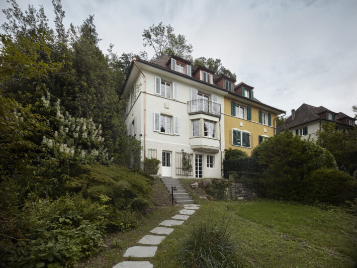 Nach einem gewonnenen Studienwettbewerb konnte die Renovierung mit größter Sorgfalt Umgesetzt werden. Dabei war der Bauherrschaft der Erhalt hochwertiger Materialien sowie der ursprünglichen Grundstruktur von zentraler Bedeutung. Die Grundrissgestaltung blieb weitgehend unverändert, doch durch gezielte Maßnahmen wie den Einbau von zwei zusätzlichen Dachfenstern wurde der Wohnraum spürbar heller und funktionaler. Der Dachraum wurde geschickt geöffnet, um dort einen neuen Gästebereich zu schaffen.